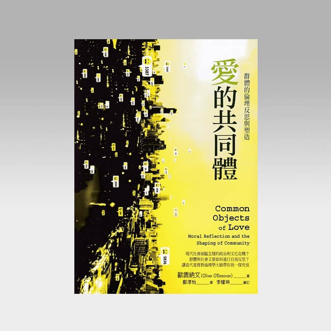 在《爱的共同体》这本精练而深刻的经典之作中,福音派影响深远的伦理学大师欧唐纳文,从奥古斯丁神学传统出发,阐明人类「分享相通」的本性和活动,乃是人类结成群体的基础。原来,所珍爱的共同事物,是将群体连结在一起的原因。而在喜爱和认知之间存在着深层的联合,并且此两者将众人联合成为一个群体,深刻地形塑着它的生命型态。而群体所爱的事物愈美善,群体就愈趋向美善,反过来说,所爱的事物愈差劣,群体就愈差劣。